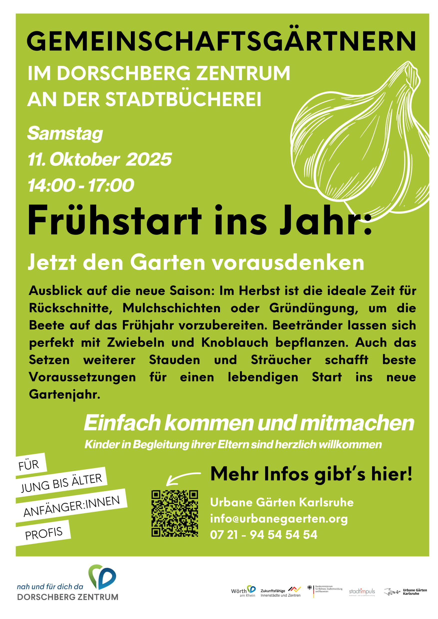 Das Projekt wird von der Stadt Wörth am Rhein in Zusammenarbeit mit „Urbane Gärten Karlsruhe“ umgesetzt. Die gemeinnützige Organisation hat sich darauf spezialisiert, urbanes Gärtnern als Teil einer nachhaltigen Stadtentwicklung zu fördern. Ihr Fokus liegt auf der Gestaltung gemeinschaftlicher Gartenflächen, der Vermittlung von Wissen zu ökologischen Anbaumethoden und der Entwicklung kreativer Lösungen für den öffentlichen Raum. Mit ihrer Erfahrung aus zahlreichen Projekten bringen sie wertvolle Impulse für den Dorschberg ein und unterstützen die Umsetzung mit Fachwissen und Praxisbegleitung.