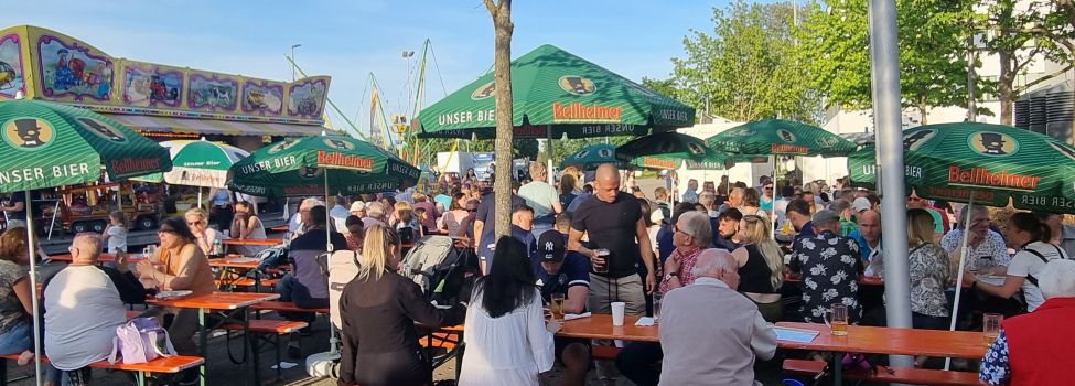 Auf dem Festplatz vom 15. bis 18. Mai 2026 mit Fahrgeschäften, Livemusik, Getränkeständen und einem großen Speisenangebot